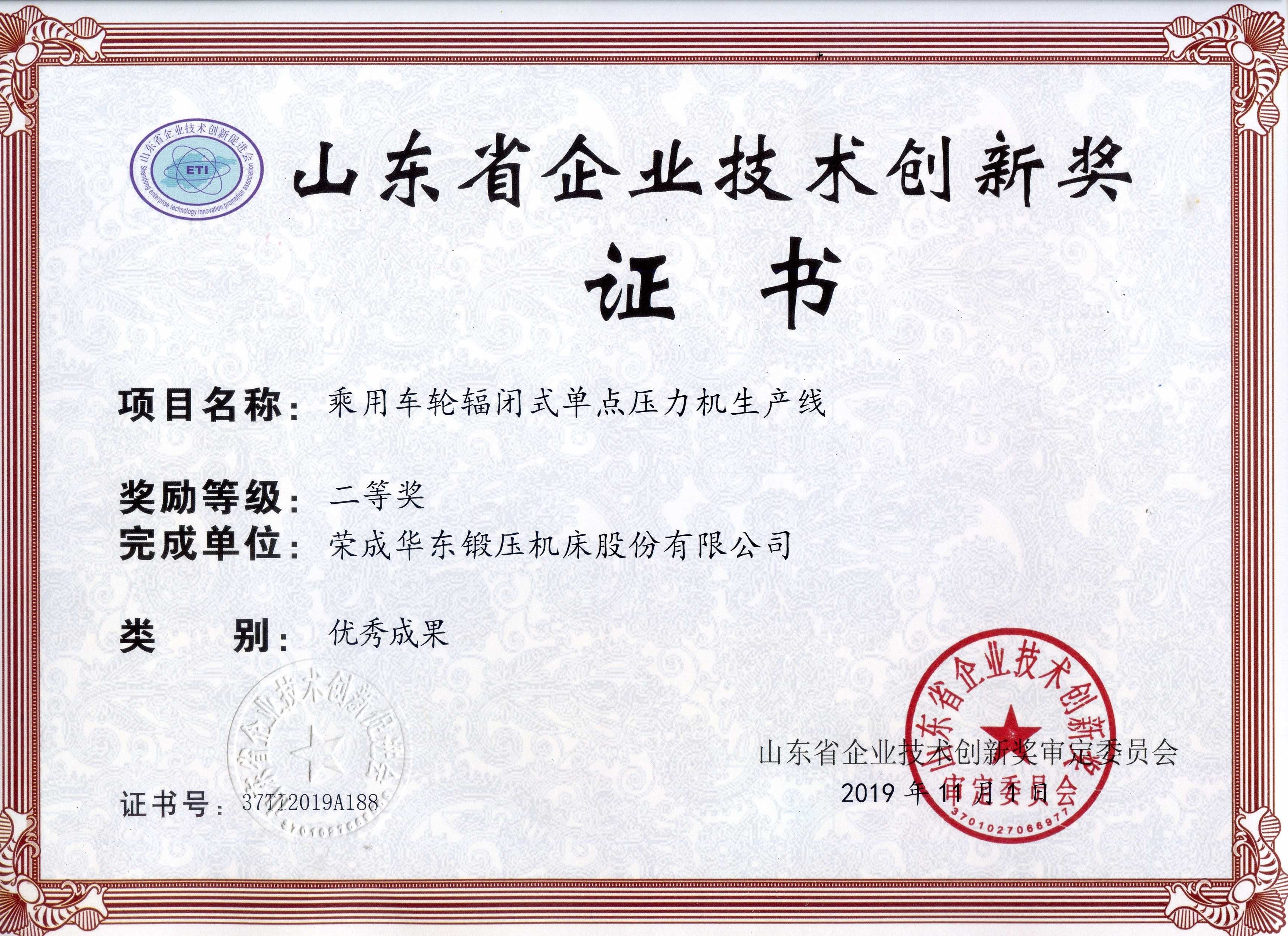 山東省企業技術創新(xīn)獎-大型(xíng)高速機械壓力機自動化線