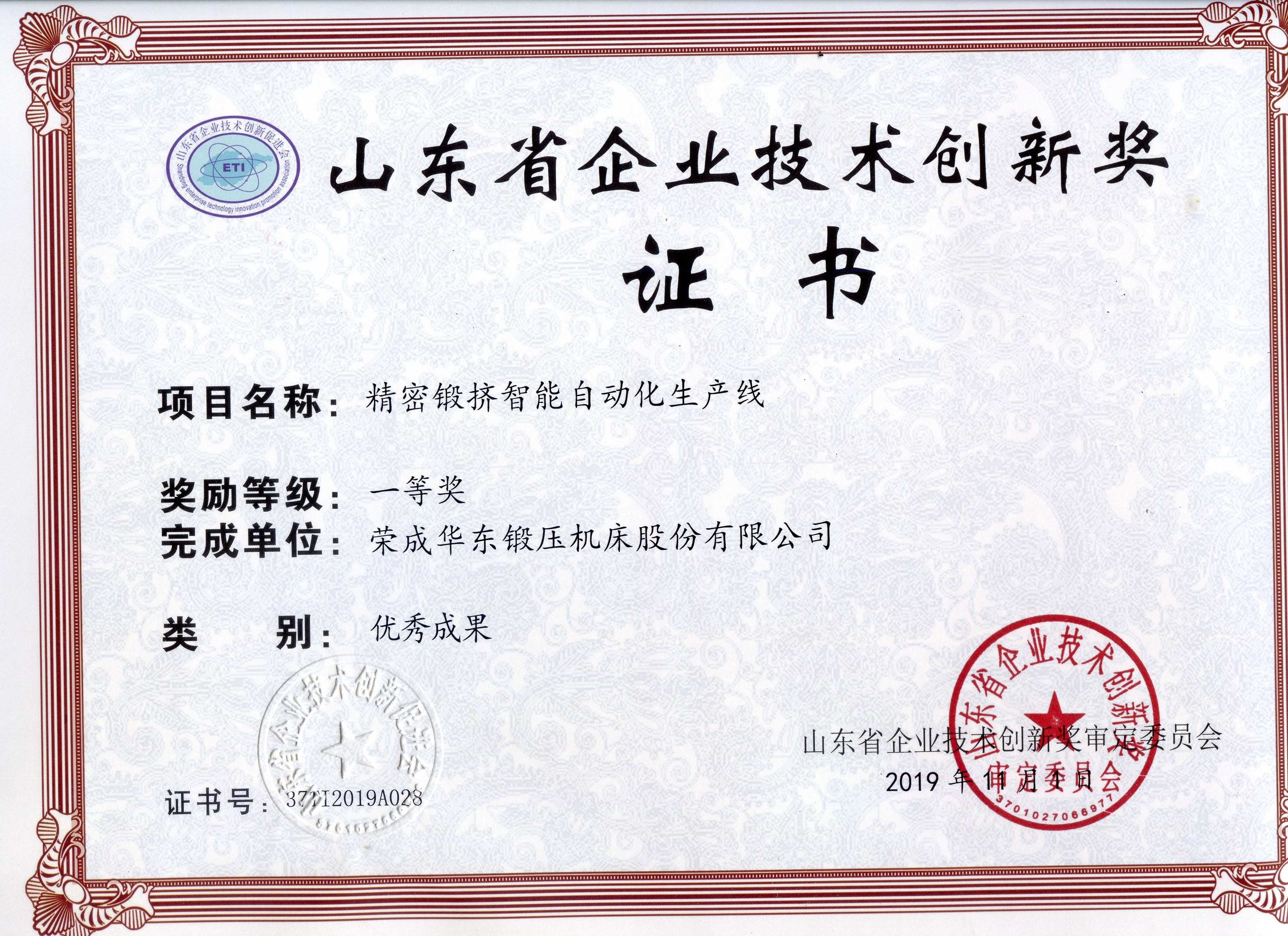 山東省企業技術創新獎-大型高速機械壓力機自動化線