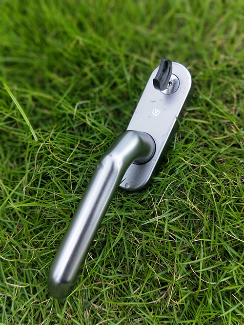 一、執(zhí)手:使用於平開窗。主要作用(yòng)是當平開窗(chuāng)扇關閉後將窗扇壓緊在窗框上,以達到密封的作用。消費(fèi)者在選購時應注意觀察表麵平整(zhěng)、無毛刺、手掂有重量感、鍍(dù)層表麵(miàn)均勻(yún)即可。